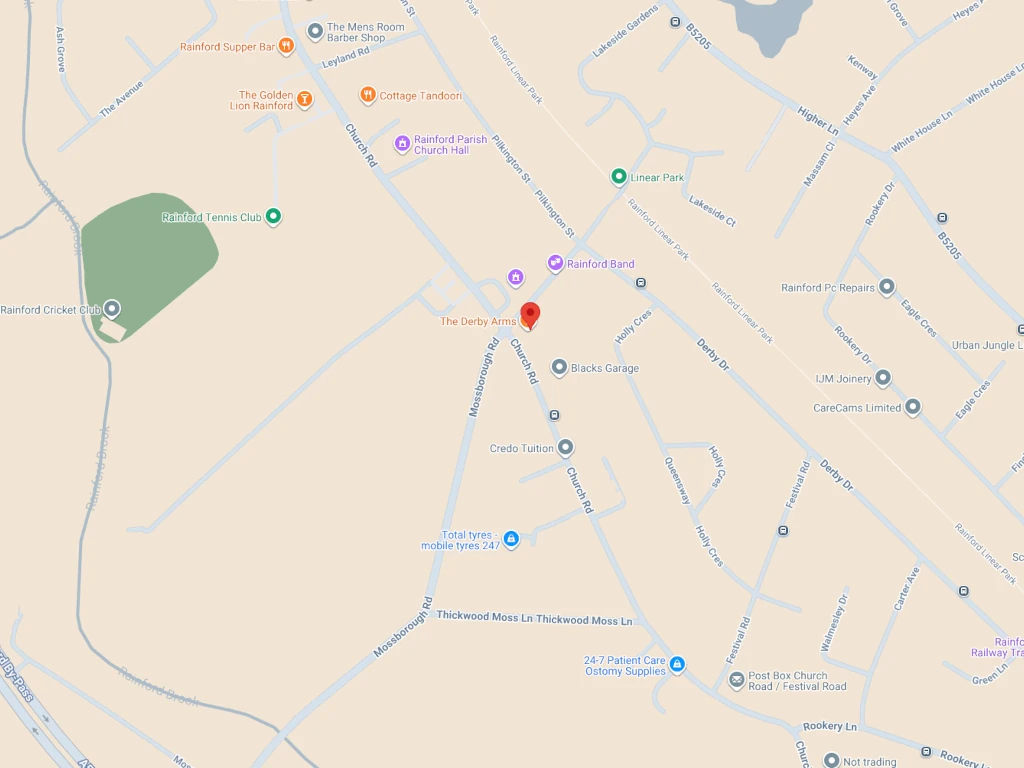 The Derby Arms is located on Church Road in the heart of Rainford.